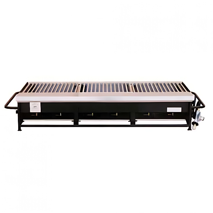 16″ x 48″ 6 20,000 BTU burner tabletop grill. Each burner separately controlled giving you the option of several temps for cooking. Propane not included. 30 lb tabk recommended. 30 lb tank lasts 7-11 hrs. 5′ Table w/adjustable legs works well with this grill