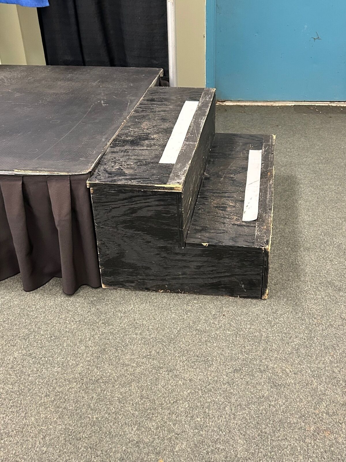 These stairs work with our 16″ and 24″ high stages to provide access. There are no hand rails. Dimensions: 38″ wide by 16″ tall.