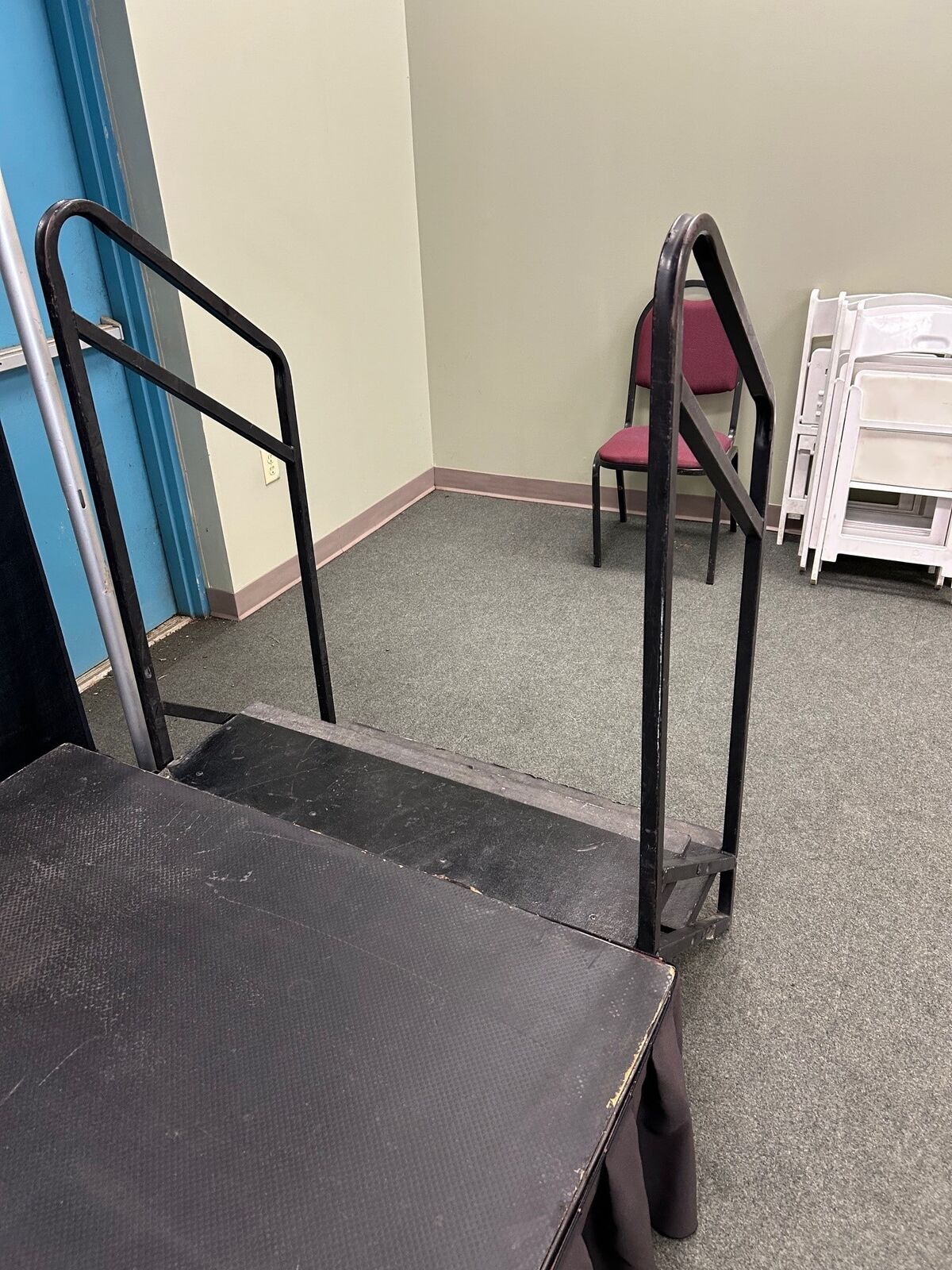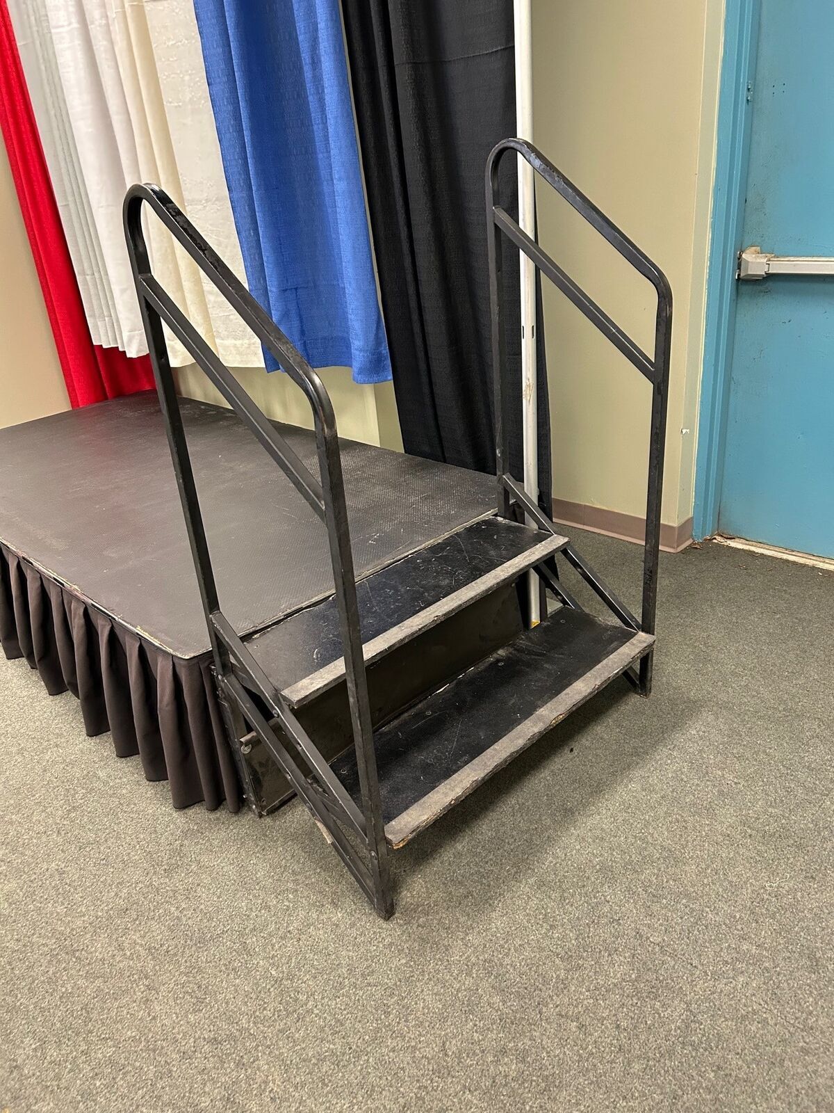 16″ hi 2 step stair with handrail work with our 16″ and 24″ high stages to provide access. Can be positioned most anywhere around the stage.